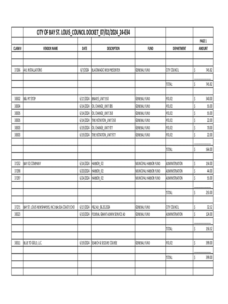 Get the free CITY OF BAY ST. LOUISCOUNCIL DOCKET07/02/202424 ...