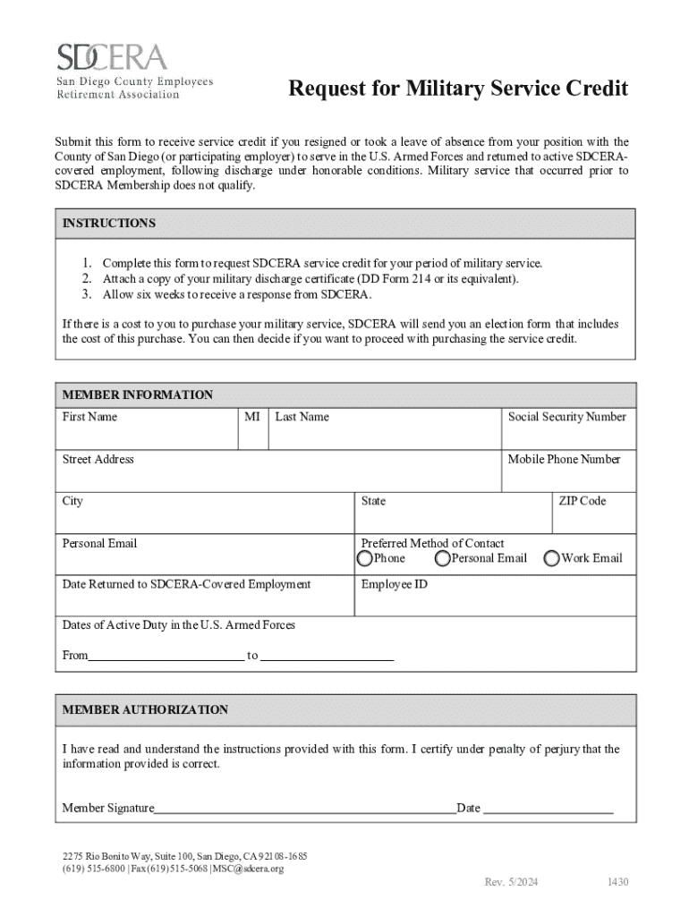 Get the free Request for Military Service Credit
