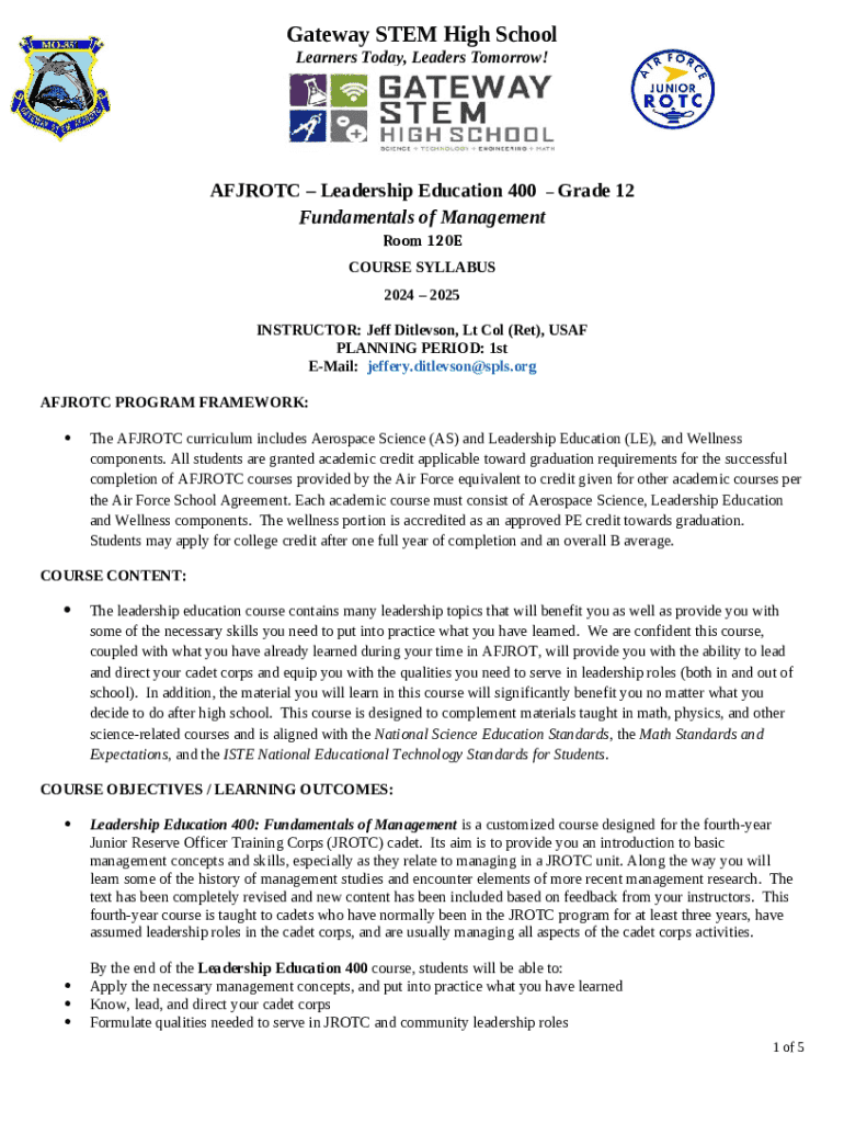 Template AFJROTC Leadership Education 400 Grade 12 instructions