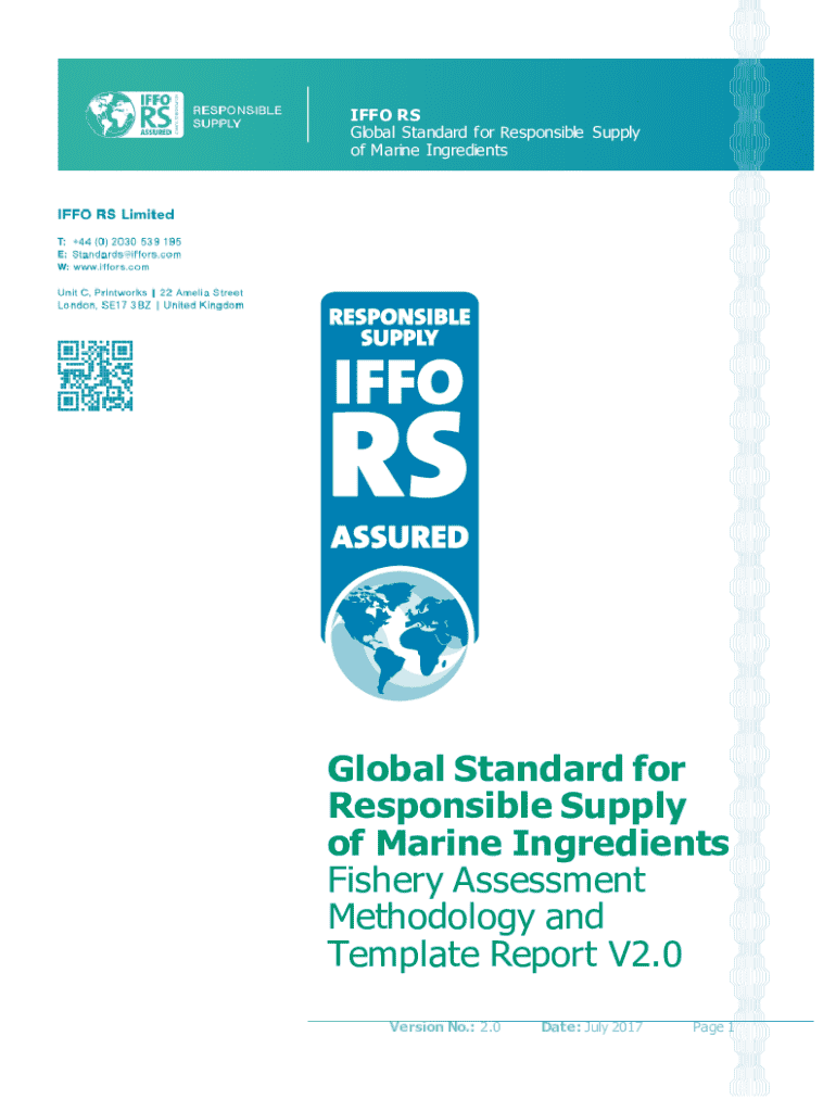 IFFO RS Global Standard for Responsible Supply of Marine IngredientsGlobal Standard for Responsible Supply of Marine Ingredients Fishery Assessment Methodology and Template Report V2.0 Version No.: