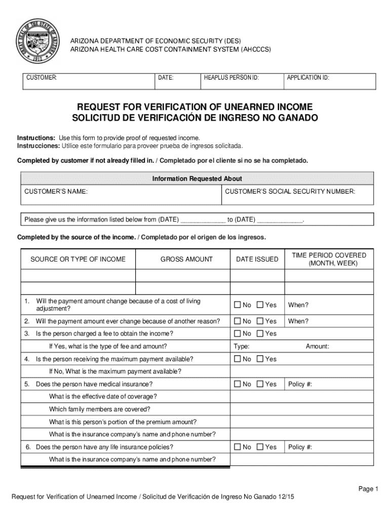 Get the free Request for Verification of Unearned Income / Solicitud de ...