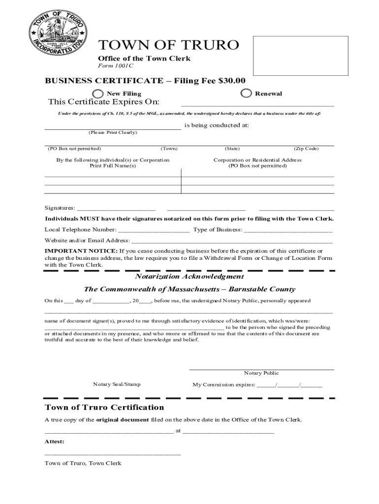 Get the free Business CertificatesTruro, MA