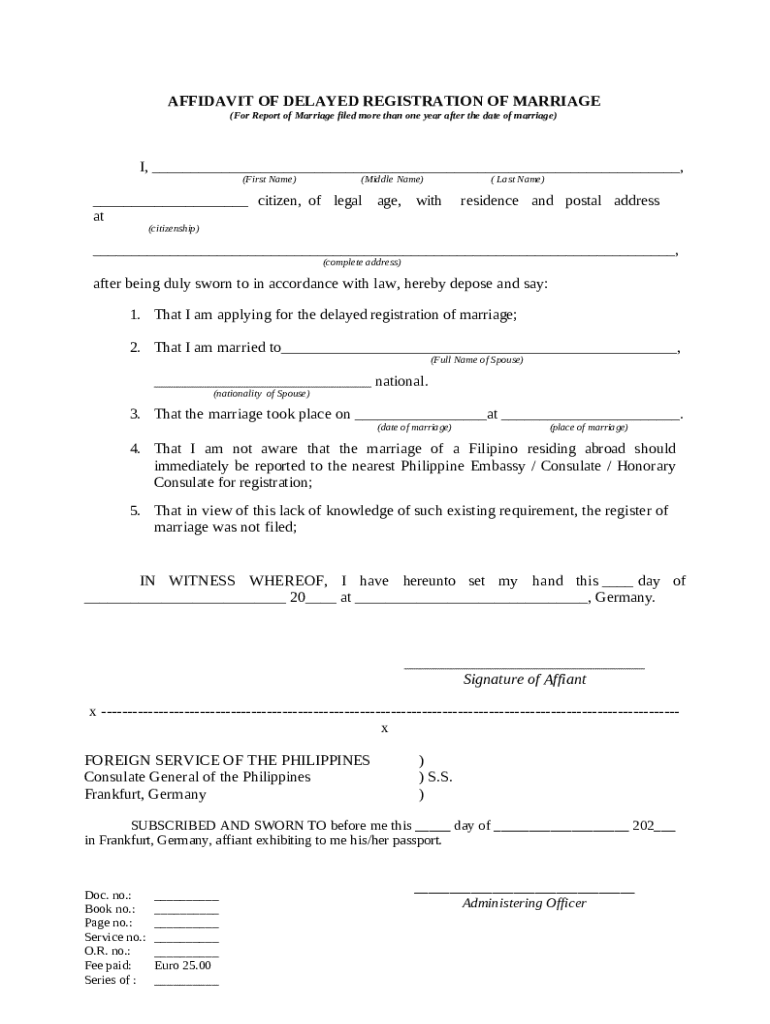 Template AFFIDAVIT OF LATE REGISTRATION OF MARRIAGE ... instructions
