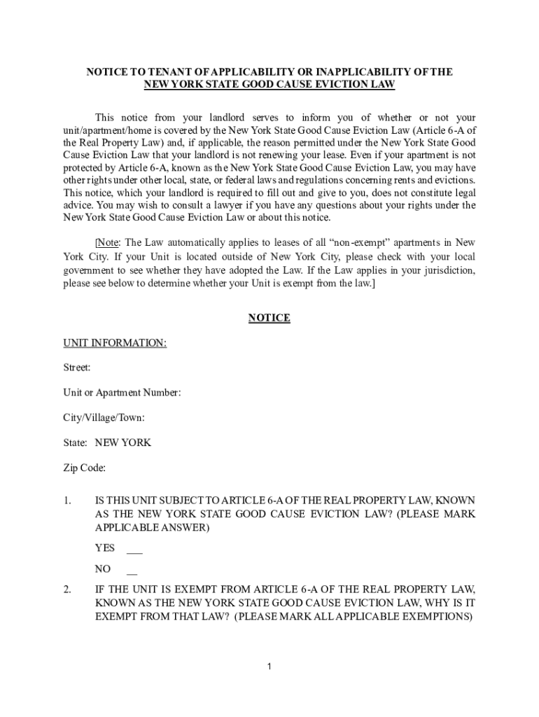 Get the free NOTICE TO TENANT OF APPLICABILITY OR INAPPLICABILITY OF THE