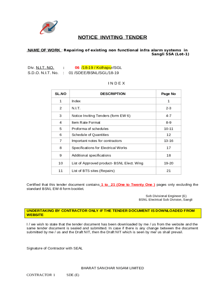 The NAME OF WORK : Repairing of existing non functional infra alarm systemsin is a fillable form in MS Word extension that should be submitted to the specific address in order to provide some information. It must be filled-out and signed, which can be done manually in hard copy, or using a certain solution such as PDFfiller. This tool helps to fill out any PDF or Word document directly in your browser, customize it depending on your purposes and put a legally-binding e-signature. Right after completion, the user can easily send the NAME OF WORK : Repairing of existing non functional infra alarm systemsin to the appropriate individual, or multiple ones via email or fax. The blank is printable as well from PDFfiller feature and options presented for printing out adjustment. In both electronic and physical appearance, your form will have a organized and professional appearance. Also you can turn it into a template to use later, there's no need to create a new blank form again. All that needed is to customize the ready sample.