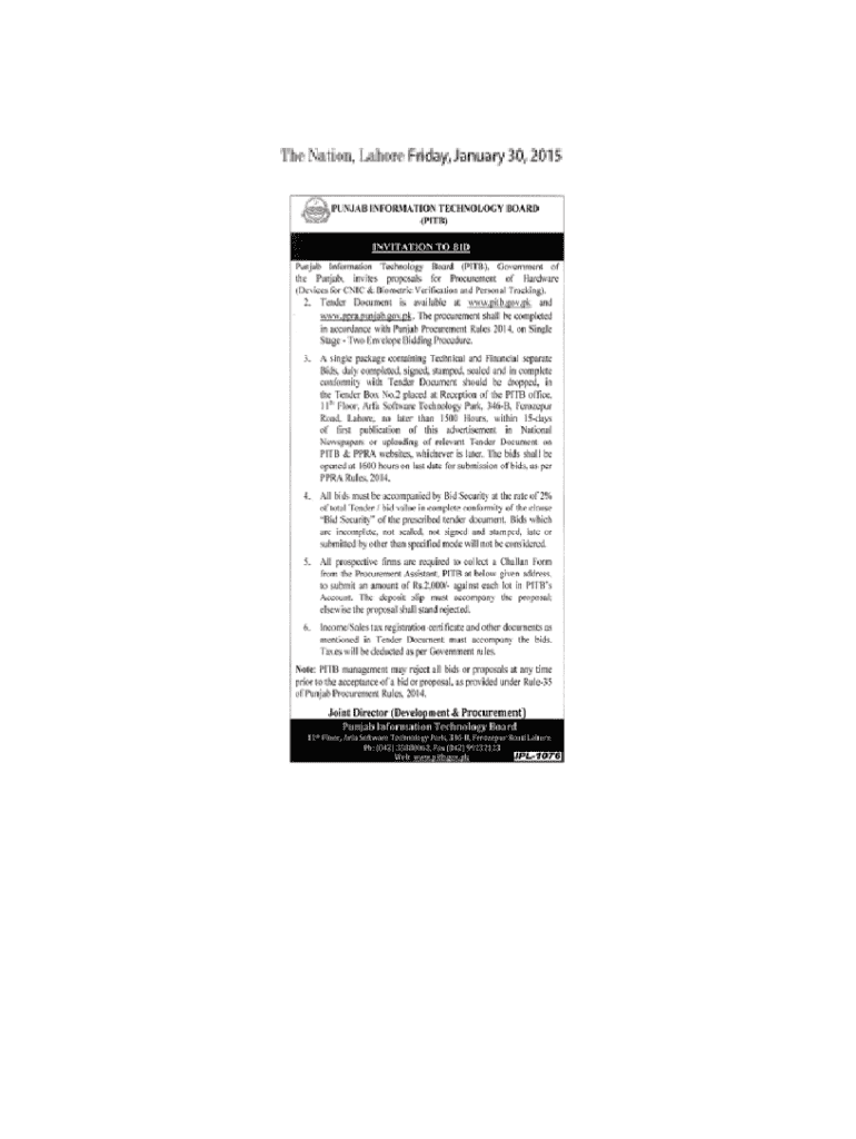 Get the free No. PITB/Proc/1371 Punjab Information Technology Board ... - pitb gov