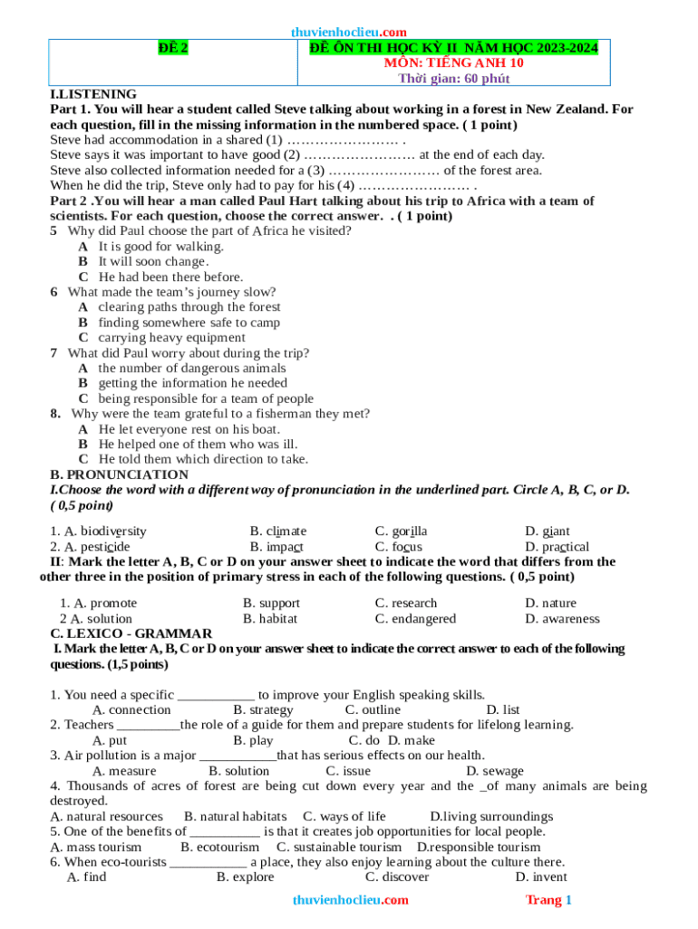 Instructions for the form BI TP B TR CHUYN SU V THC HNH NNG ...