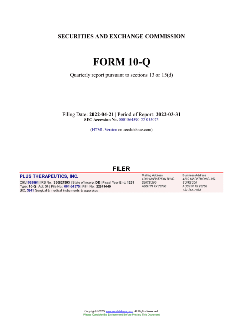 SECURITIES AND EXCHANGE COMMISSIONFORM 10Q Quarterly report pursuant to sections 13 or 15(d)Filing Date: 20220421 | Period of Report: 20220331 SEC Accession No. 000156459022015075 (HTML Version on