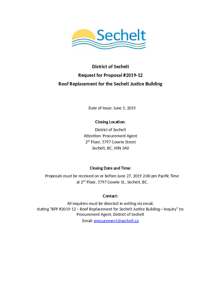 - Search for the Sechelt court building roof replacement to proceed form in the Search box on the top of the main page.