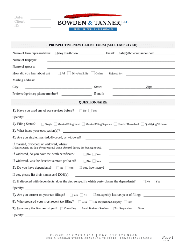 Comprehensive Guide to the New Client Self-Employed DOCX Template Form
