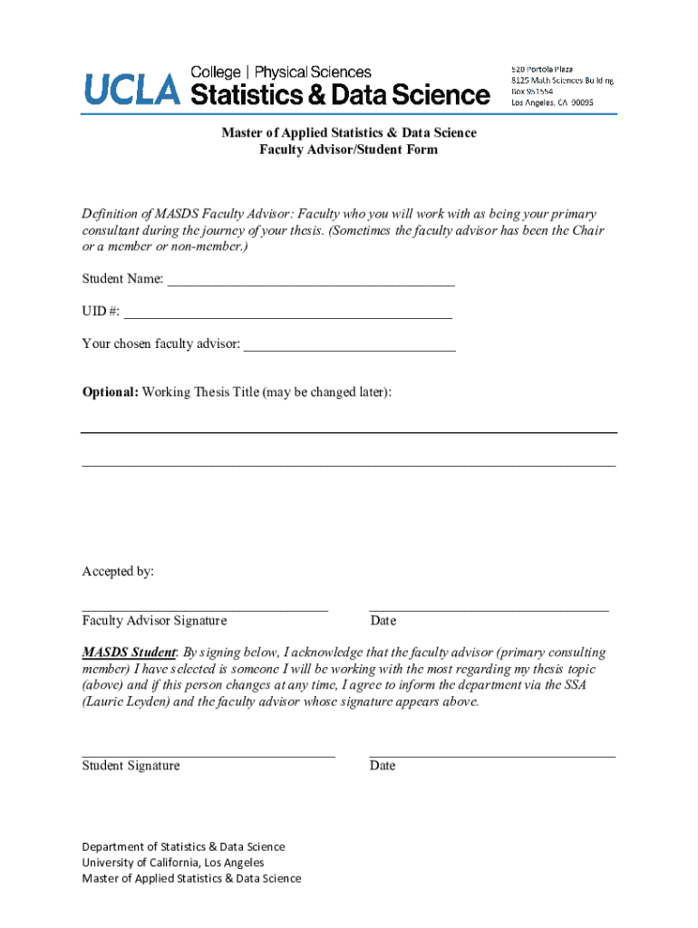 Get the free Department of Statistics M.A. Programs - Academic Advising