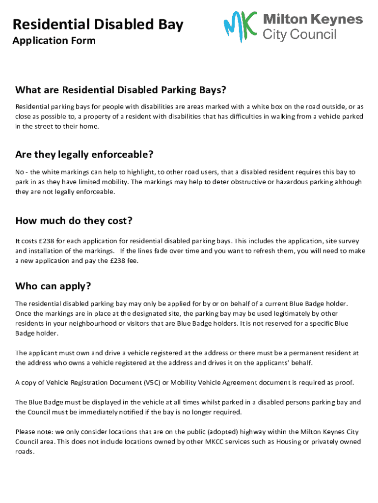 Get the free Disabled Bay (Residential Area) Application Form New