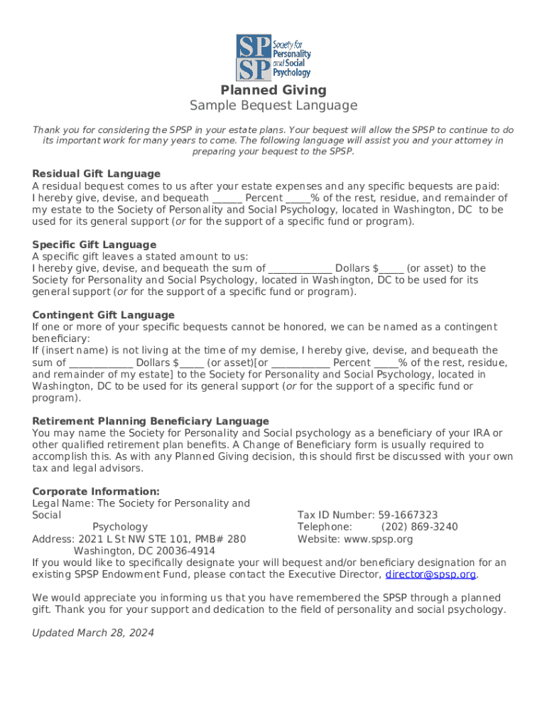 Sample Bequest Language for Form