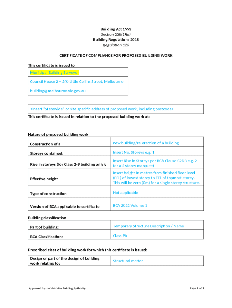 Comprehensive Guide to the Certificate of Compliance for Proposed Building Work - docx Template Form