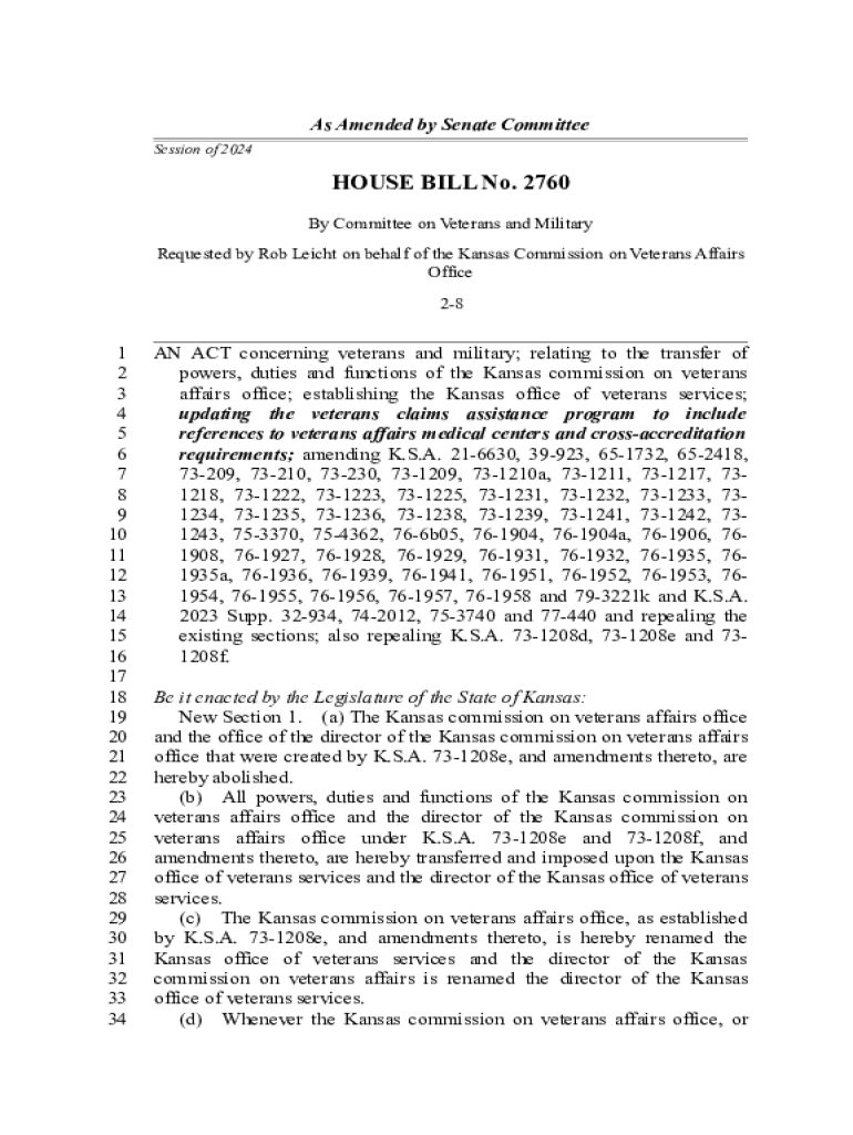 Get the free Bill tracking in Kansas - HB 2760 (2023-2024 legislative ...