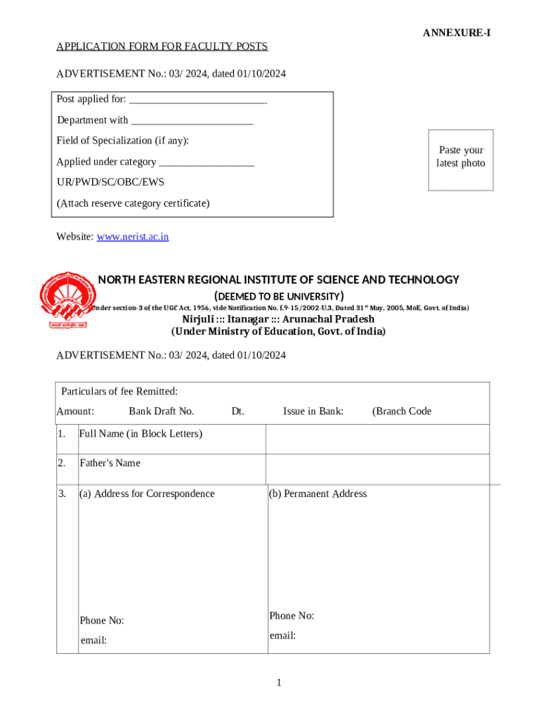 The first thing you need to begin completing the form Home PageNERIST, Nirjuli is editable copy. If you're using PDFfiller for this purpose, view the options down below how you can get it: