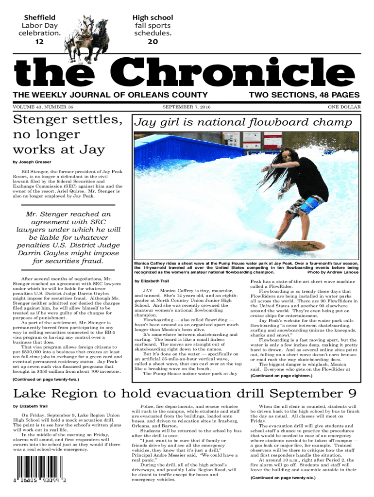 THE WEEKLY JOURNAL OF ORLEANS COUNTY SECTIONS, 48 Passenger settles, Jay girl is national flow board champ
