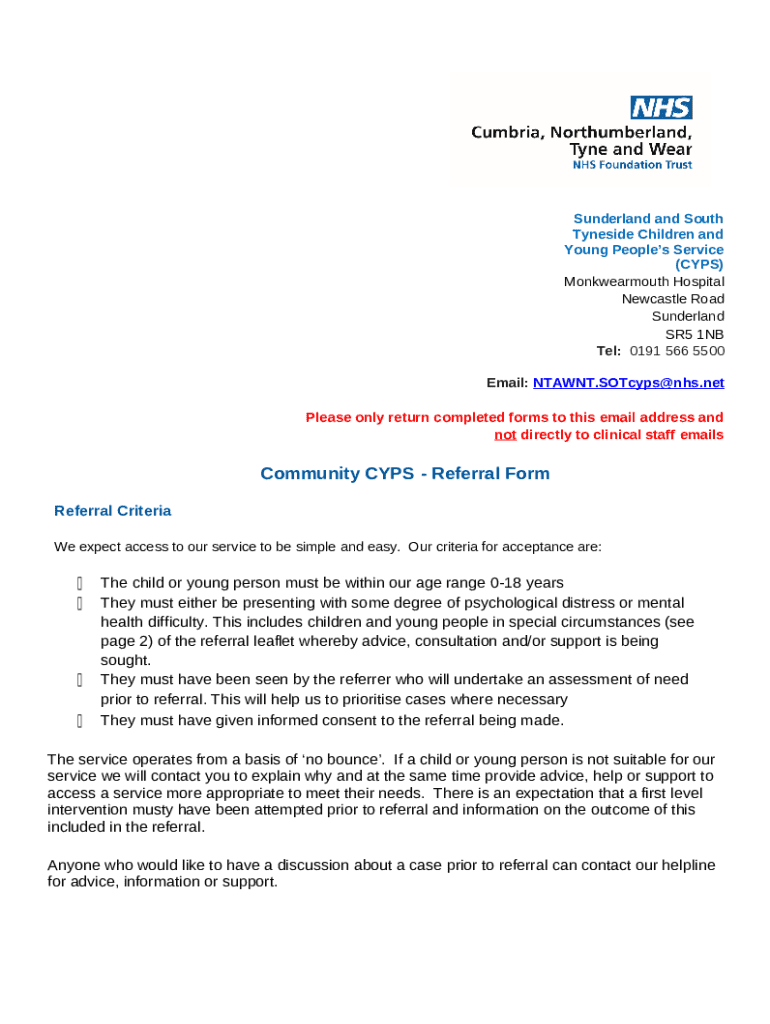 What is Children's and young people's services Form?