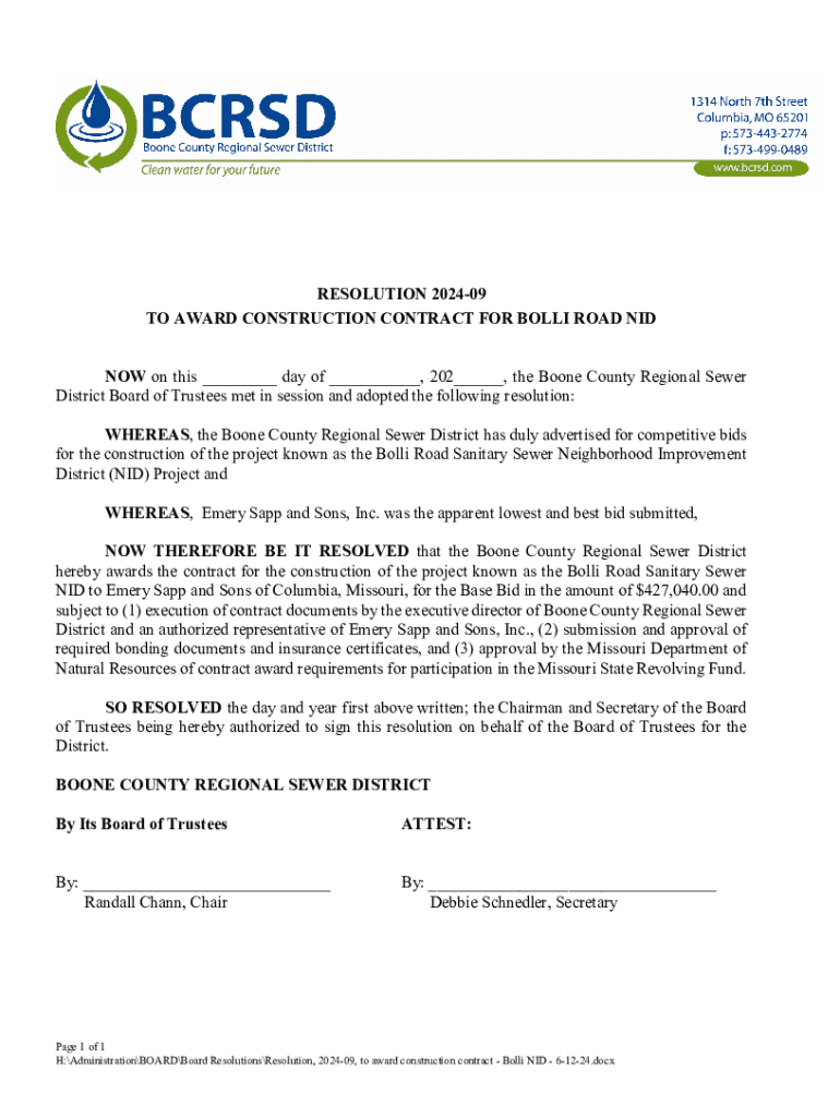 Get the free TO AWARD CONSTRUCTION CONTRACT FOR BOLLI ROAD NID