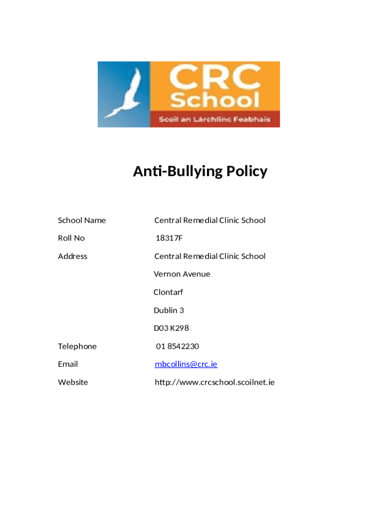 How to fill out Anti-Bullying Policy CRC