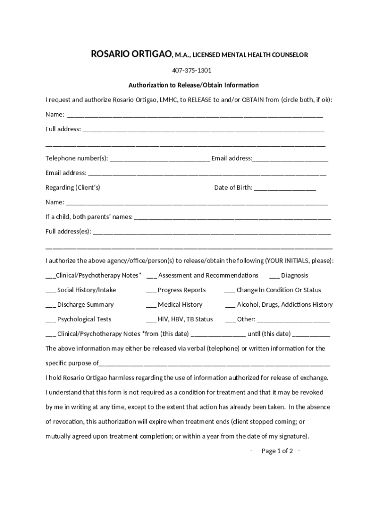 What is Rosario Ortigao - Licensed Mental Health Counselor Form?