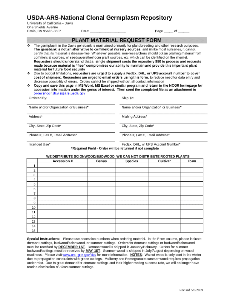 For individuals and teams looking to stay informed, subscribing to updates related to the nat'l clonal germplasm rep form is essential. Engaging with newsletters or information from the NCGR allows researchers to receive the latest news and changes relevant to germplasm management. This not only keeps teams updated on regulatory requirements but also enhances their capacity to utilize resources effectively.