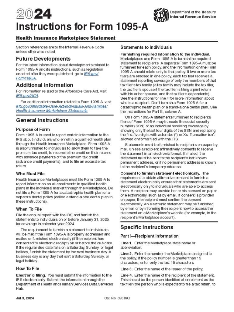 2024Instructions for Form 1095ADepartment of the Treasury Internal Revenue ServiceHealth Insurance Marketplace Statement Statements to IndividualsSection references are to the Internal Revenue Code