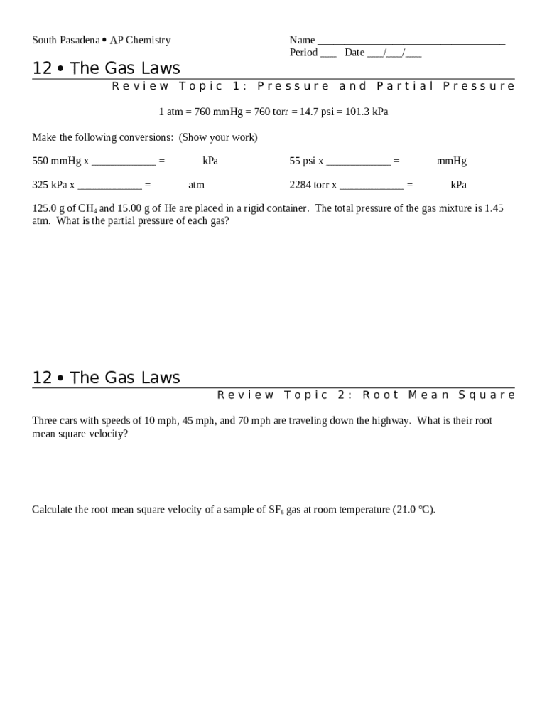 AP Chemistry Gases Practice Form: Mastering Gas Laws for Exam Success