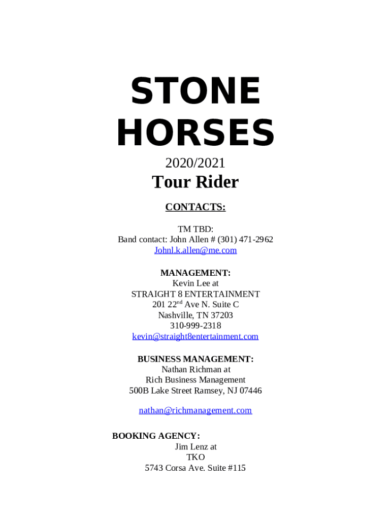 The Artist's Tour Rider Cont. is a fillable form in MS Word extension which can be completed and signed for specific purpose. Then, it is furnished to the actual addressee to provide specific information of any kinds. The completion and signing is able manually or using a trusted tool e. g. PDFfiller. These services help to send in any PDF or Word file without printing out. It also lets you edit it for your requirements and put a valid e-signature. Once you're good, the user ought to send the Artist's Tour Rider Cont. to the recipient or several recipients by email or fax. PDFfiller is known for a feature and options that make your blank printable. It includes a variety of settings when printing out appearance. No matter, how you'll file a document - in hard copy or electronically - it will always look professional and clear. In order not to create a new writable document from the beginning every time, turn the original form into a template. Later, you will have an editable sample.