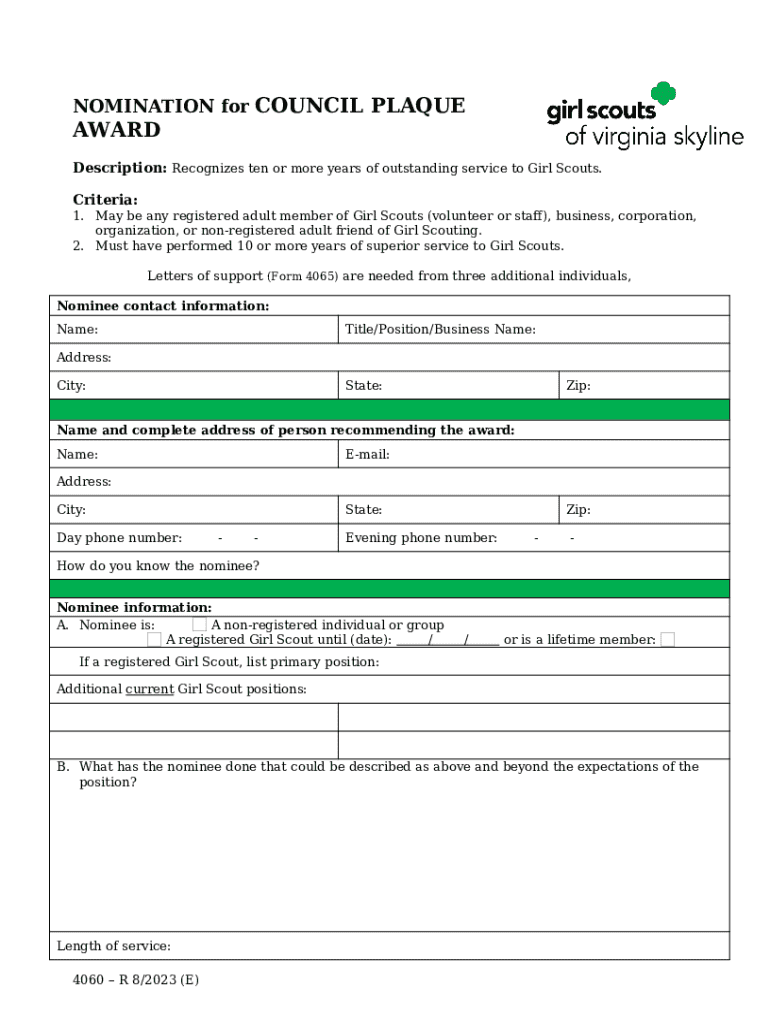 The nomination packet for girls, often referred to as the 'girl form,' has unique requirements that highlight the distinctive contributions and perspectives of young women. These forms are typically employed in scenarios like girls' leadership awards, educational scholarships aimed at empowering young women, and community recognition programs designed to uplift female voices.