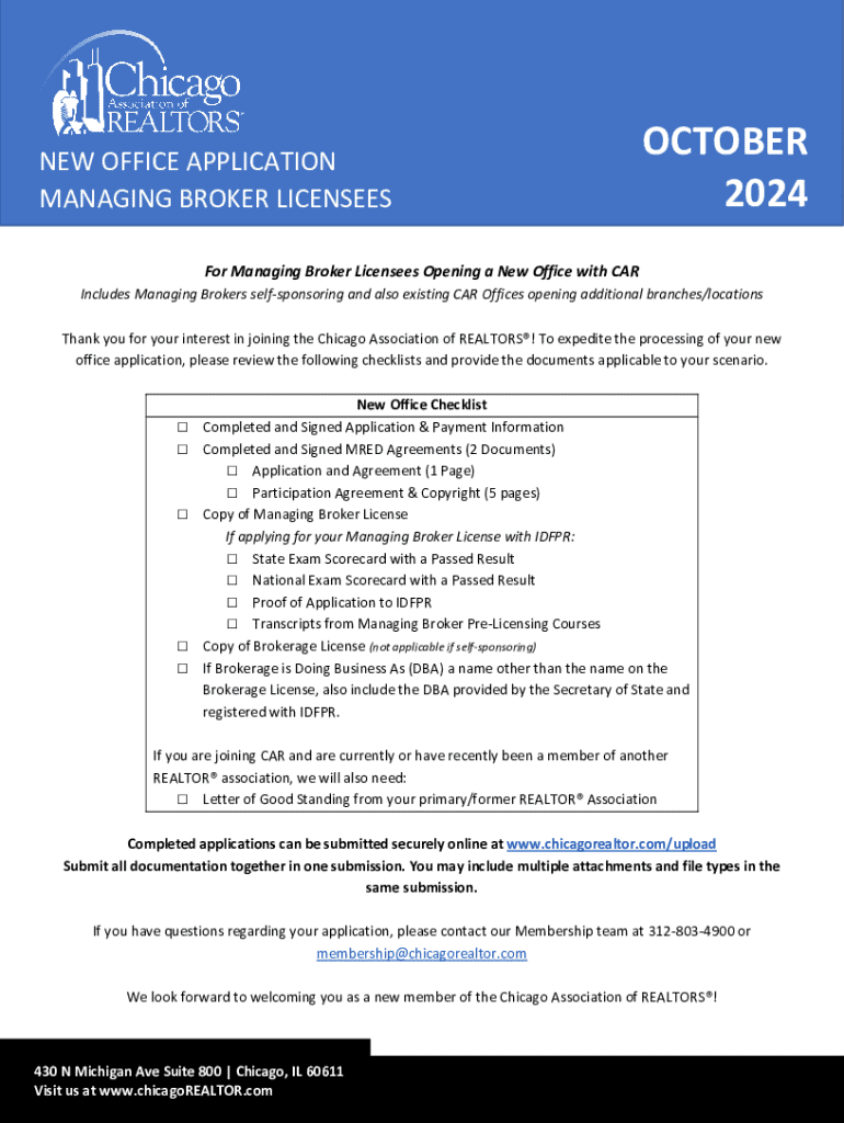 Get the free Includes Managing Brokers self-sponsoring and also existing CAR Offices opening addi...