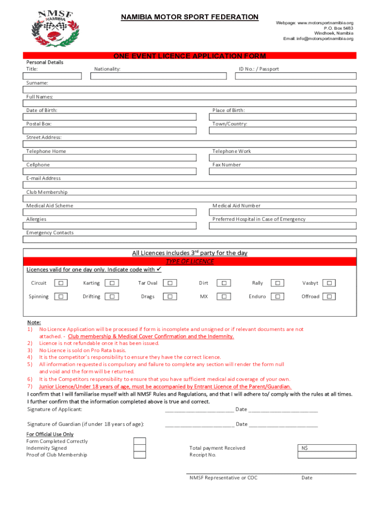 Proper documentation and compliance are paramount in the world of motorsport. The NMSF emphasizes the significance of adhering to regulatory standards to prevent accidents, maintain fair competition, and protect participants. By ensuring that all necessary forms and documents are correctly filled out, the federation helps maintain a streamlined and professional approach to motorsport in Namibia.