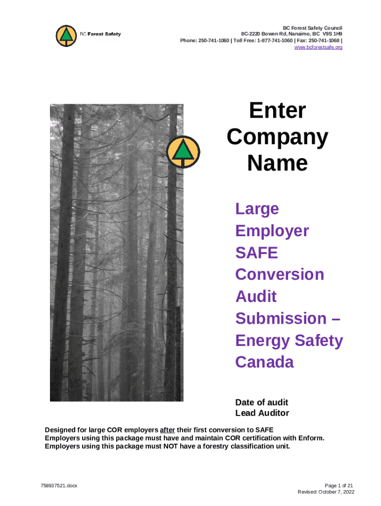 BASE SAFE Conversion Audit Submission - Energy Safety Canada. BASE Conversion template instructions