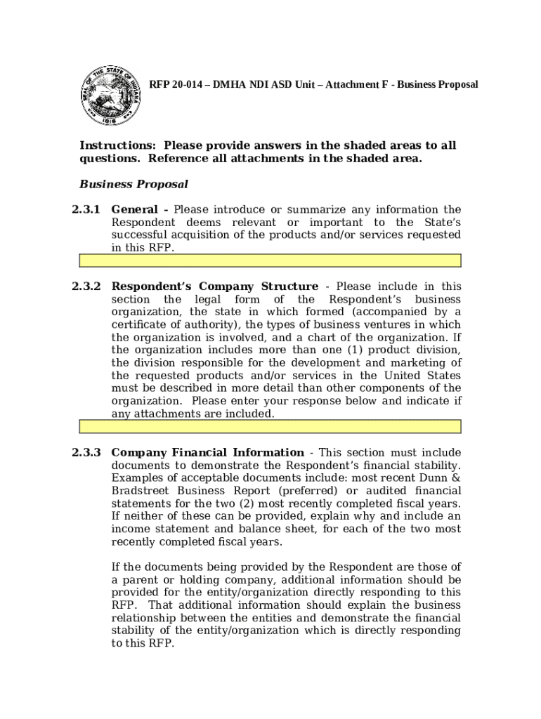 Template RFP 20-014 DMHA NDI ASD Unit Attachment F - Business Proposal instructions