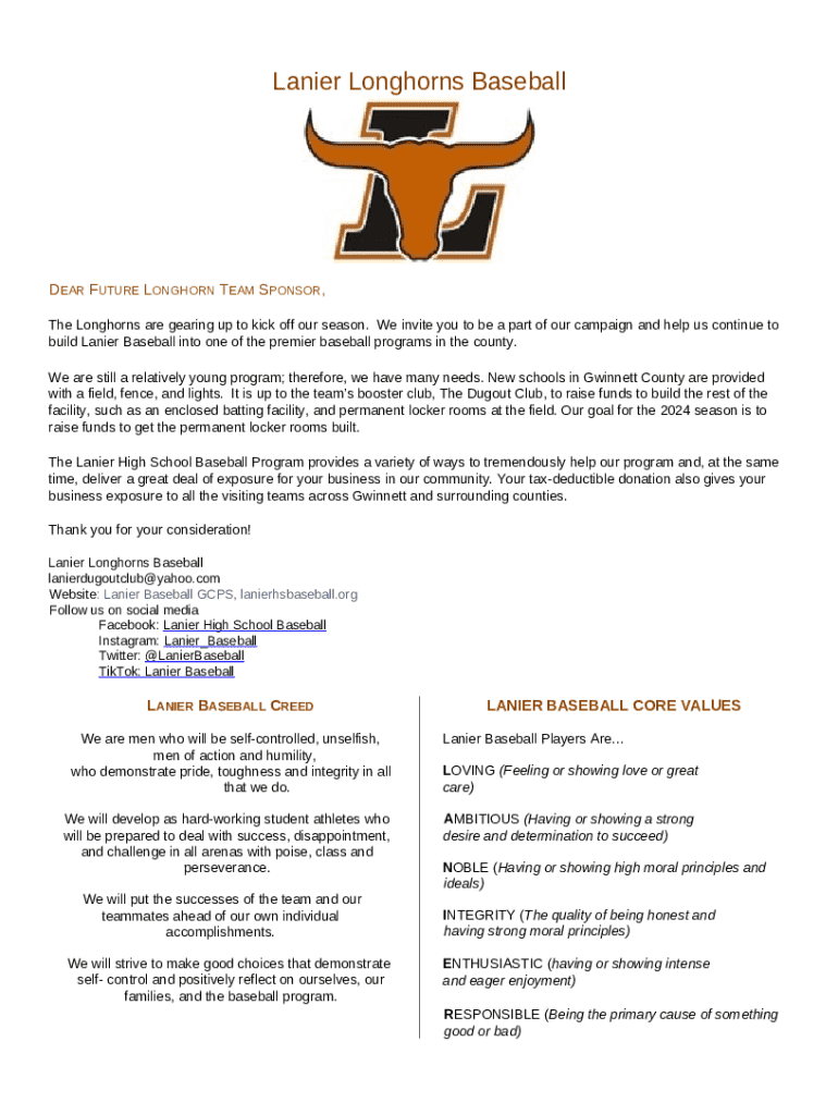 Lanier Longhorns Baseball Template Form: Your Complete Guide
