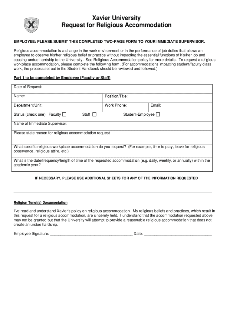 In addition to the primary forms discussed, several other forms might be relevant at Xavier University. Here are some examples and resources to consider: