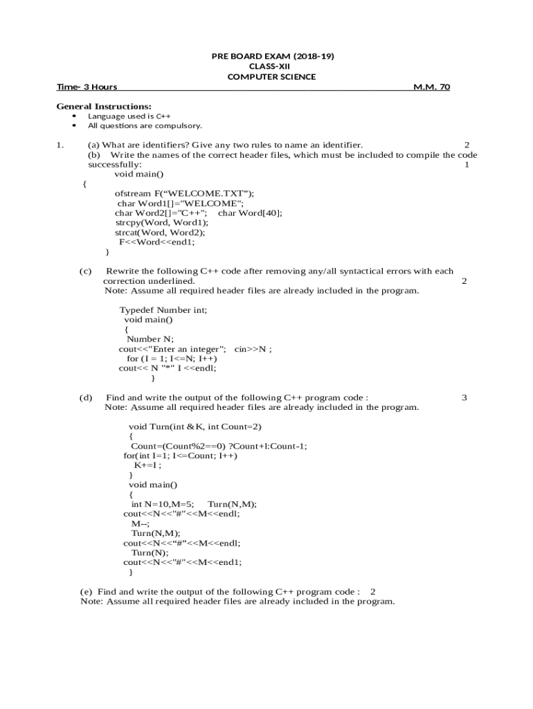 - Get the Class XII Computer Science (083) Sample Question Paper ... form in PDFfiller’s catalogue.