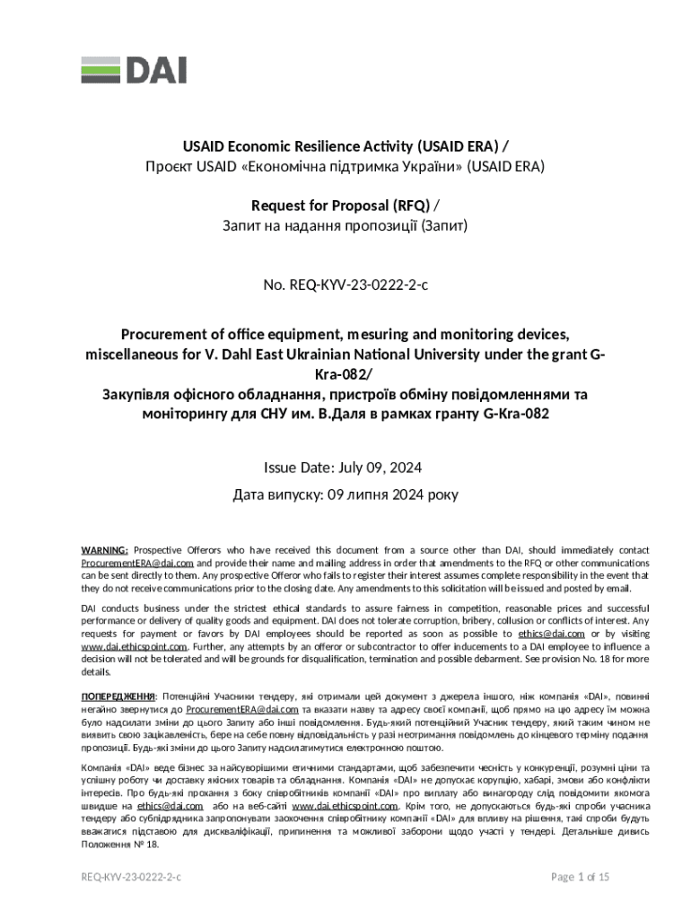 You can find the USAID Economic Resilience Activity Form on the official USAID website or directly through the [pdfFiller]() portal. Before starting to fill out the form, gather the required information, such as your organization’s details, project objectives, and initial budget estimates.