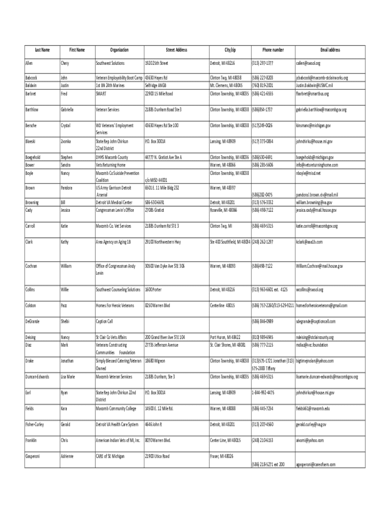 Last NameFirst NameOrganizationStreet Addressing/iPhone numberEmail addressAllenCherySouthwest SolutionsBabcock