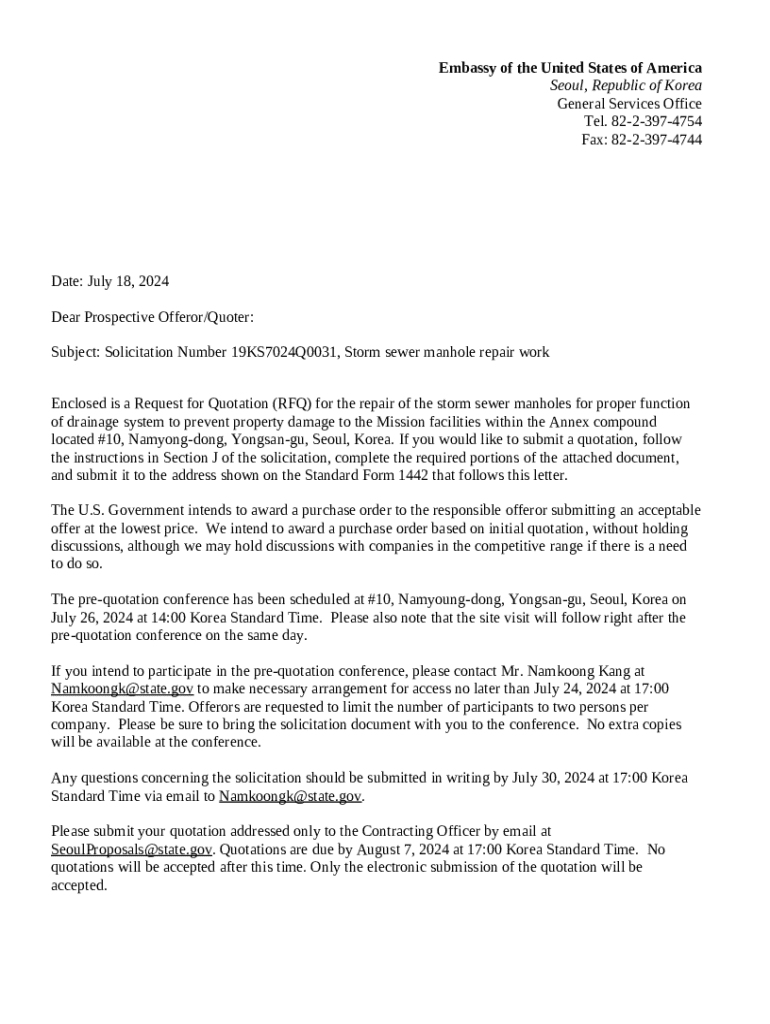 Instructions for the form Subject: Solicitation Number 19KS7024Q0031, Storm sewer manhole repair work