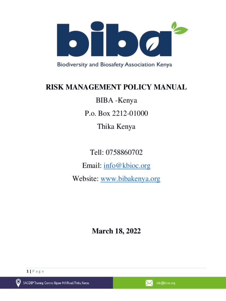 Get the free RISK MANAGEMENT POLICY MANUAL BIBA -Kenya P.o. ...