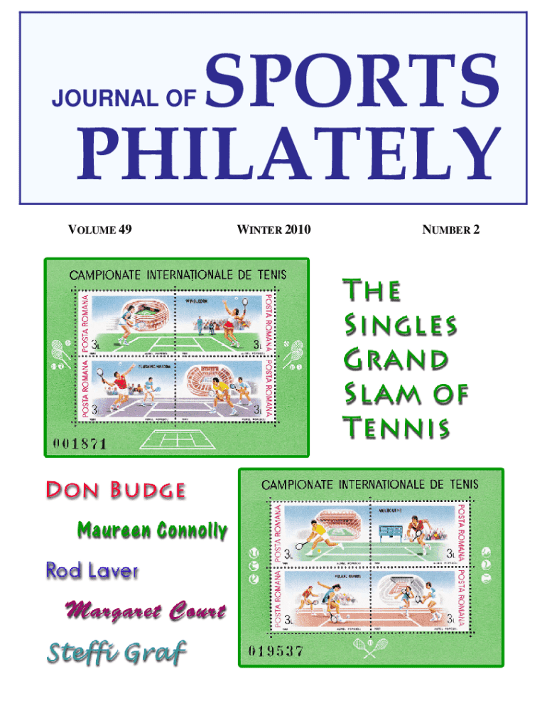 PHILATELYJOURNAL VOLUME 49WINTER 2010NUMBER 2TABLE OF Contents.sport stamps.president\'s Message