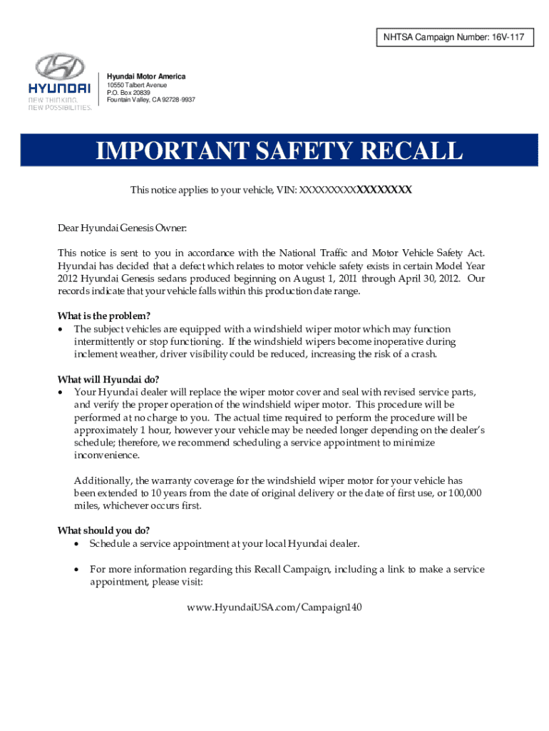 The Genesis recalls form is designed to facilitate the documentation of vehicle recalls. This form serves as an essential tool for recording details about the safety issues affecting the vehicle and ensures that appropriate steps are taken to address these concerns. Effective utilization of the recalls form aids both consumers and manufacturers in maintaining records and facilitates seamless communication regarding the recall.