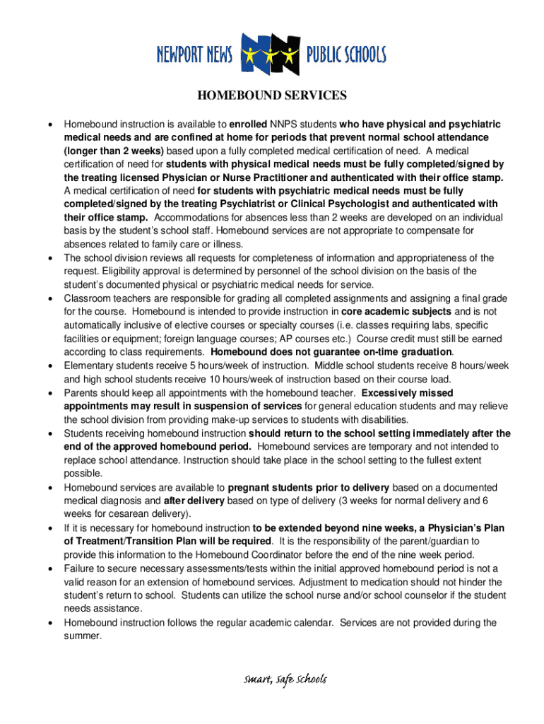 Get the free NEWPORT NEWS PUBLIC SCHOOLS- HOMEBOUND INSTRUCTION - sbo nn k12 va