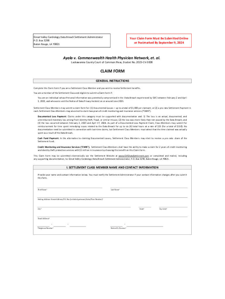 Get the free Great Valley Cardiology Files Notice of Fortra Data Breach ...