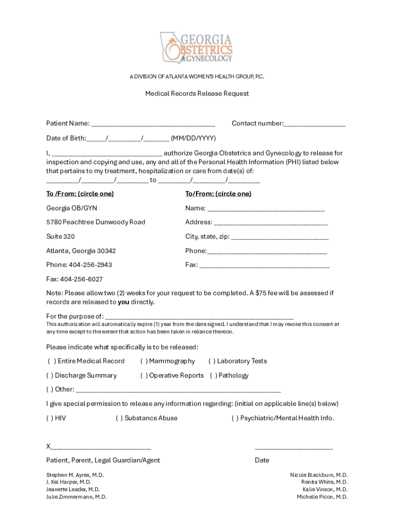 When filling out the form, pay close attention to each section to ensure accuracy. Provide your contact information, sign the form, and date it. For example, if requesting lab results, specify the test dates to streamline processing.