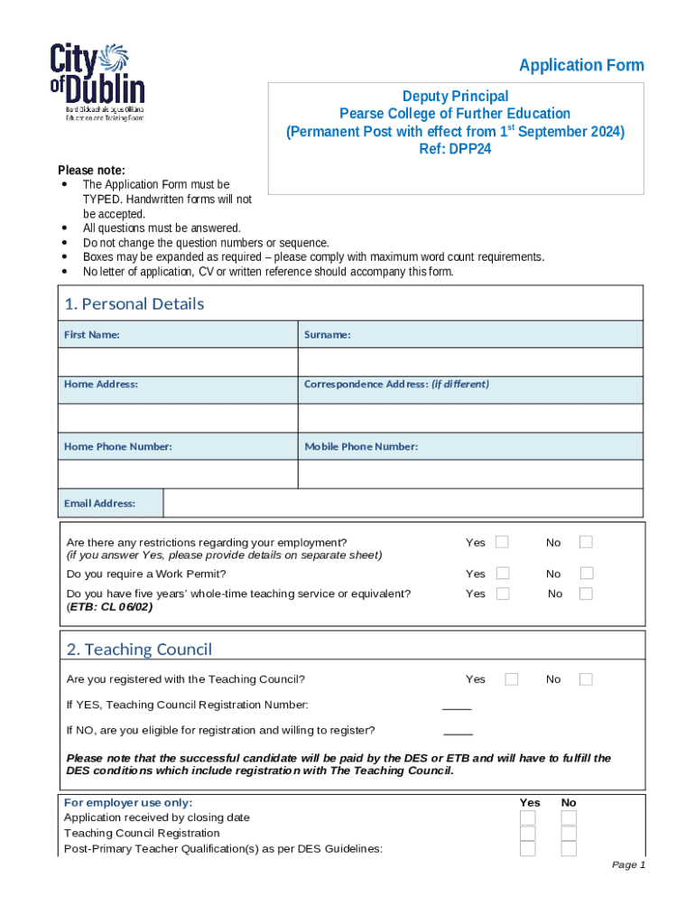 Professional Experience: This part requires candidates to outline their relevant teaching experience and roles held.