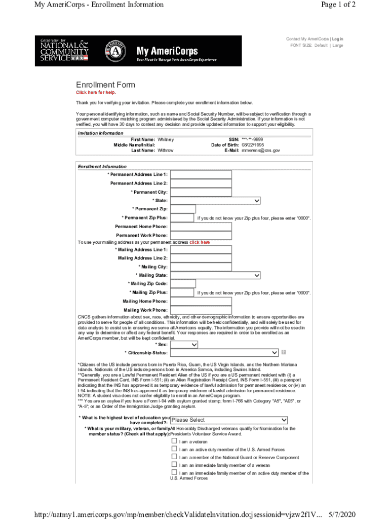 Get the free How do I access the MyAmeriCorps Enrollment Form?