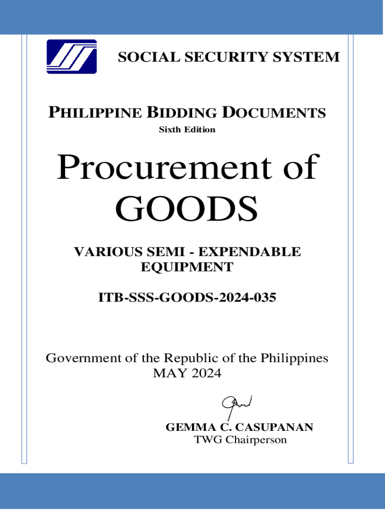 SOCIAL SECURITY SYSTEMPHILIPPINE BIDDING DOCUMENTS Sixth EditionProcurement of GOODS VARIOUS SEMI EXPENDABLE EQUIPMENT ITBSSSGOODS2024035Government of the Republic of the Philippines MAY 2024GEMMA