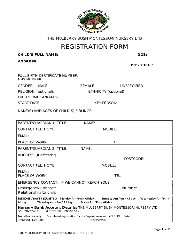 Many parents have queries regarding the Mulberry Bush Montessori form. Below are some common questions and answers that could assist you:
